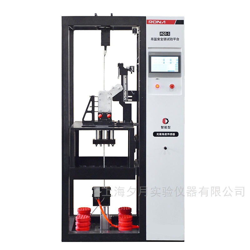 吊篮安全锁试验平台是结合国家标准 GB/T 19155-2017《高处作业吊篮》的规定和用户要求 而设计。本试验平台实施对高处作业吊篮安全锁防坠落装置进行测试、标定、评价的实验室 检测设备。本设备采用新的角度测量机构代替角度传感器测量,避免多个试验试样频繁拆卸 安装角度传感器的繁琐操作,同时提高测量精度。